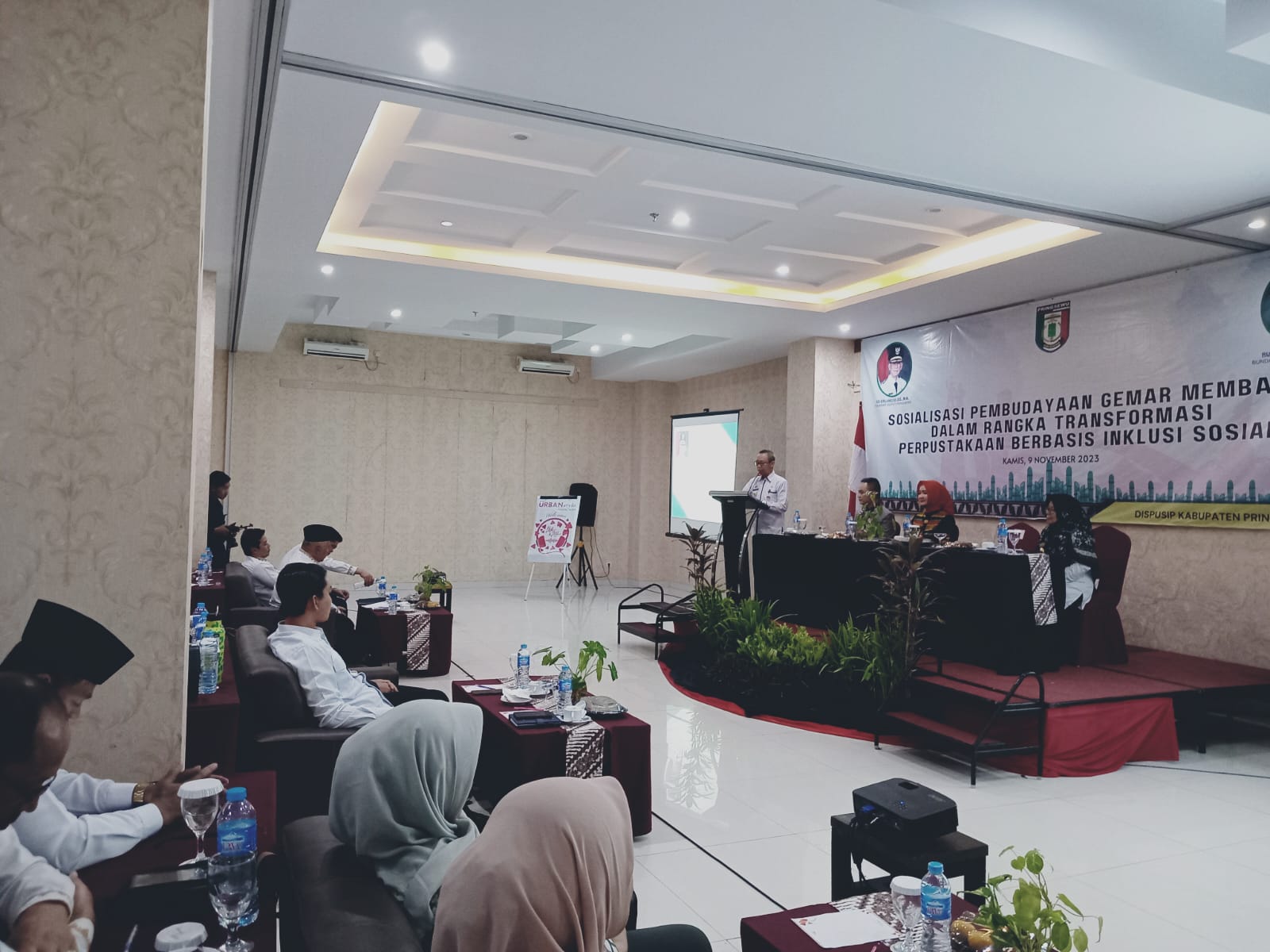 Pembudayaan Gemar Membaca dalam rangka Transformasi Perpustakaan Berbasis Inklusi Sosial disosialisasikan di Kabupaten Pringsewu.
