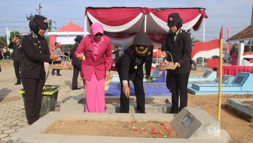 Acara tersebut dihadiri oleh Wakil Ketua Bhayangkari Cabang Pringsewu, Ny. Utje Robi Wicaksono, beserta para pengurus Bhayangkari, Pejabat Utama Polres Pringsewu, dan peserta upacara ziarah lainnya.