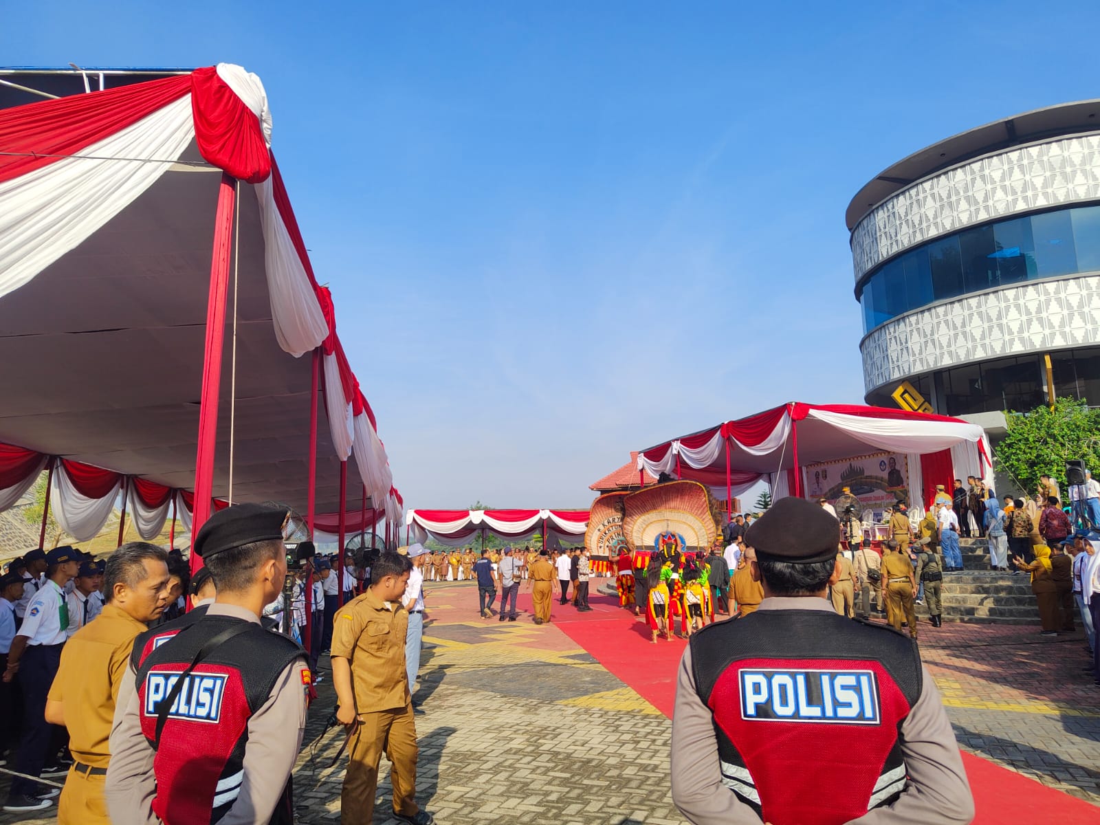Pringsewu (ungkapkasus.id)| Puluhan personel dari Kepolisian Resor (Polres) Pringsewu dikerahkan untuk mengamankan kegiatan pembukaan Masa Pengenalan Lingkungan Sekolah (MPLS) tingkat SMA dan SMK se-Provinsi Lampung. Acara yang berlangsung di Komplek Menara Pandang Bendungan Way Sekampung, Pagelaran, Pringsewu pada Senin (15/7/2024) ini, dibuka secara resmi oleh Penjabat Gubernur Lampung, Samsudin.