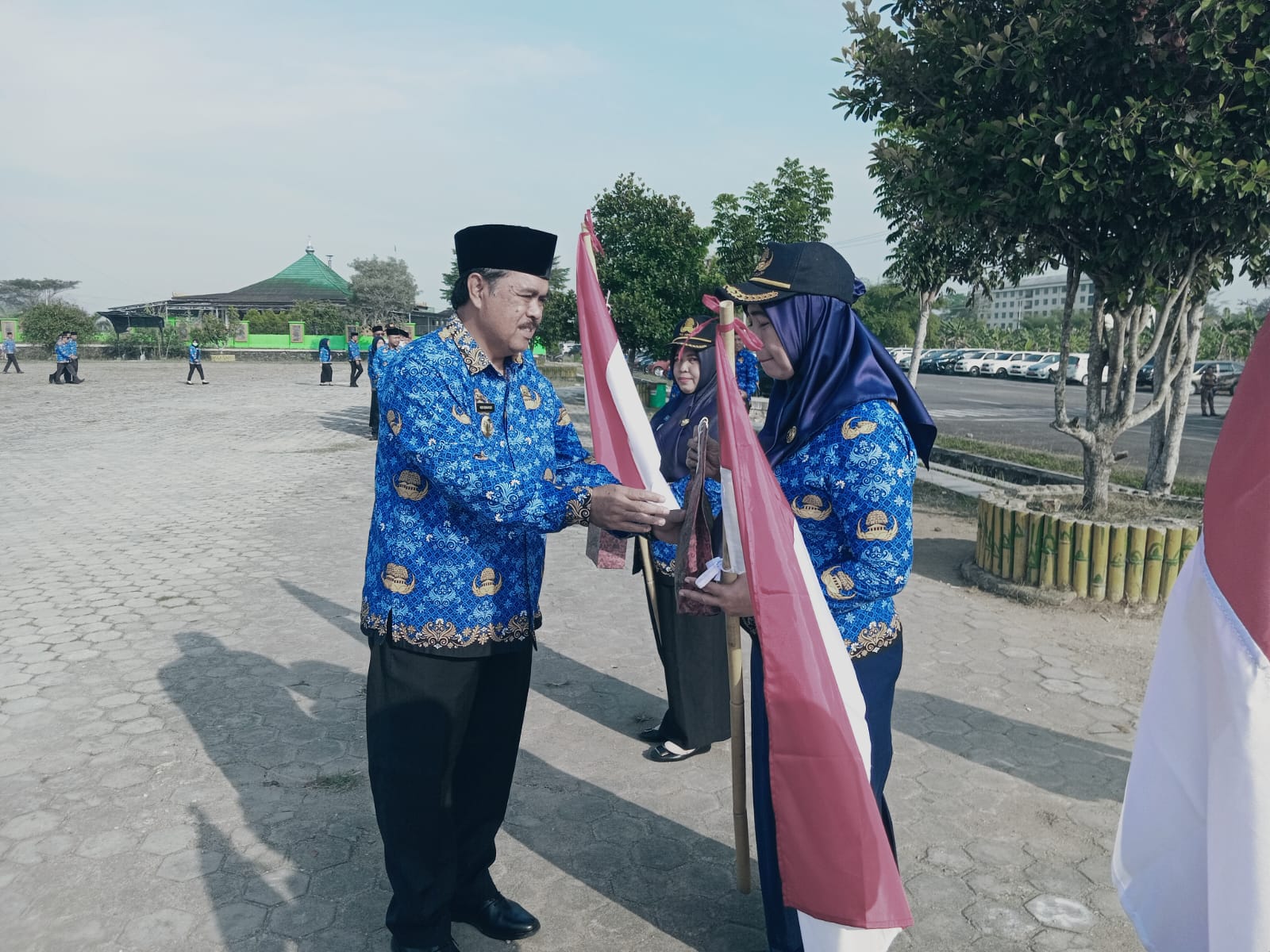 Kegiatan ini dilaksanakan saat upacara bulanan di lapangan pemkab setempat, Rabu (17/7/2024), ditandai dengan penyerahan bendera oleh Sekretaris Daerah (Sekda) kepada para camat dan kepala perangkat daerah Kabupaten Pringsewu.
