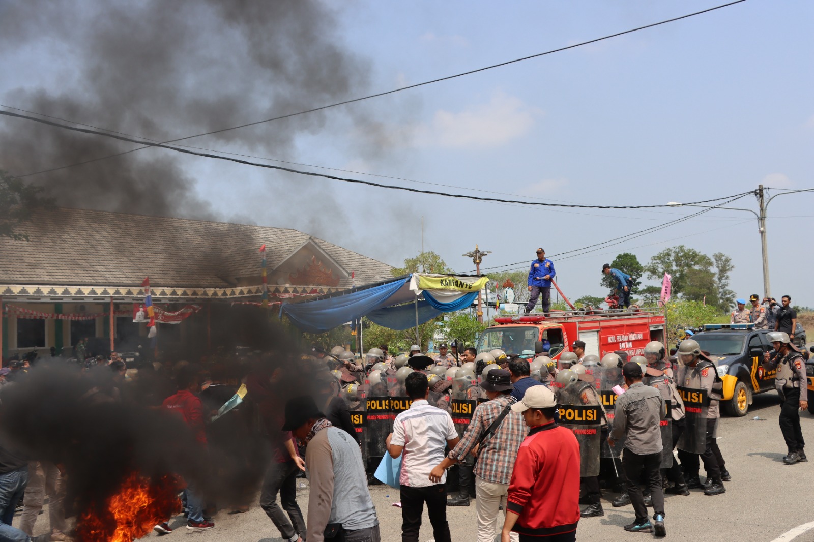 Situasi sempat memanas dengan adanya dorongan dan tendangan dari massa terhadap petugas kepolisian yang bersiaga dengan tameng lengkap. Namun, kesigapan aparat kepolisian dari Polres Pringsewu berhasil meredam aksi anarkis tersebut, mencegah massa memasuki kantor KPU.