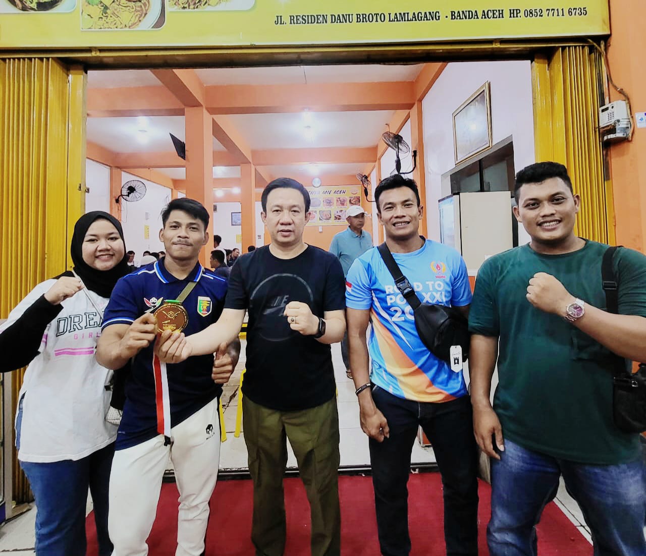 Penjabat Bupati Pringsewu Dr. Marindo Kurniawan, S.T., M.M. menjumpai sejumlah atlet asal Kabupaten Pringsewu yang sedang berlaga pada PON XXI Aceh-Sumut di Banda Aceh, Selasa (10/9/2024) malam.