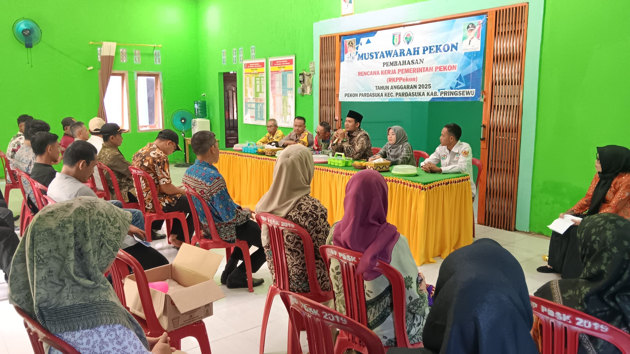 Musyawarah Perencanaan Pembangunan Pekon Pardasuka untuk tahun anggaran 2025 telah dilaksanakan pada Kamis, 26 September 2024. Acara ini dihadiri oleh berbagai pihak terkait, termasuk perwakilan dari kecamatan, anggota BHP, Babinkamtibmas, dan anggota DPRD Sefti Wahyuni, S.Pd.I.