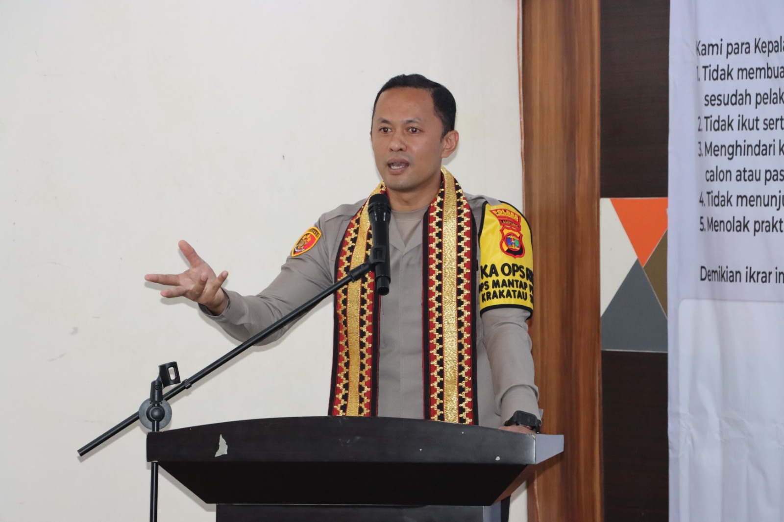 Selain itu, Kapolres juga mengingatkan bahwa sanksi tegas akan diberlakukan bagi siapa saja yang terbukti melakukan praktik politik uang, yang tidak hanya mencederai demokrasi, tetapi juga merugikan masyarakat. Ia juga menegaskan pihak kepolisian akan terus memantau kemungkinan akan adanya money politik terutama yang biasa marak jelang masa pemungutan suara.