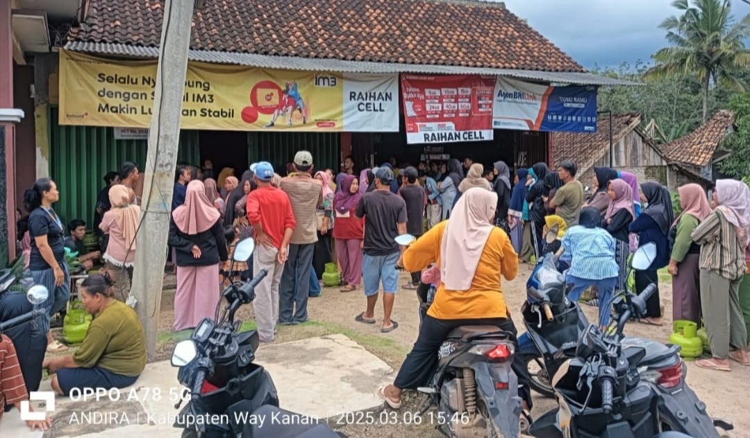 Kepala Kampung Gistang Kecamatan Umpu Semenguk Romli secara inisiatif menjual 280 gas melon tiga kilogram sesuai dengan harga eceran tertinggi (HET), bertempat di rumah nya, Kamis (6/3).