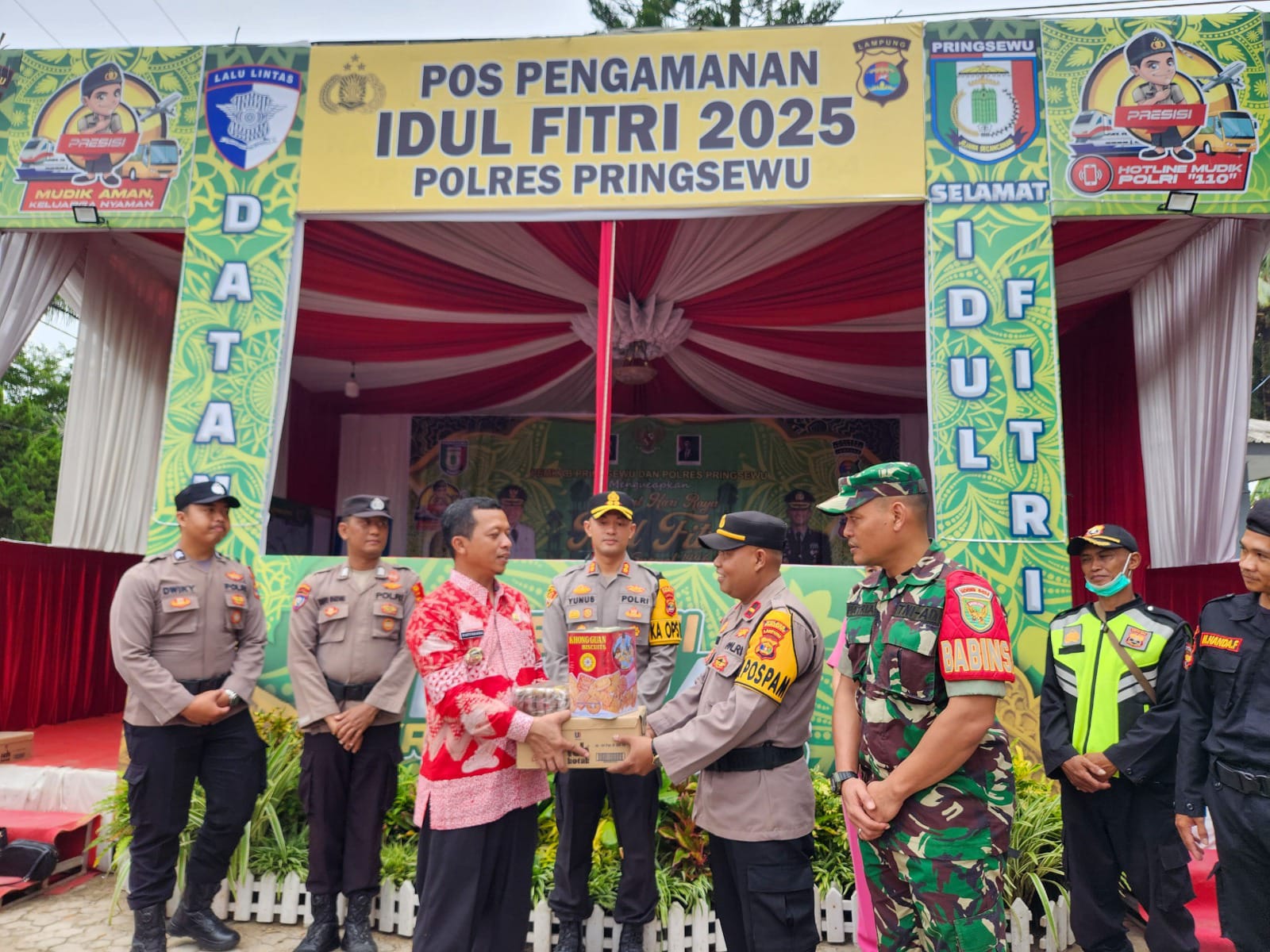 Bupati Pringsewu Riyanto Pamungkas meninjau Pos Pelayanan Idulfitri 1446 H di Jl.Lintas Barat Sumatera, Komplek Rest Area KM 37, Pekon Wates Timur, Kecamatan Gadingrejo, Kabupaten Pringsewu dan Pos Pengamanan di Jl.Jenderal Sudirman, Komplek Pendopo Kabupaten Pringsewu, Jumat (28/3/2025).
