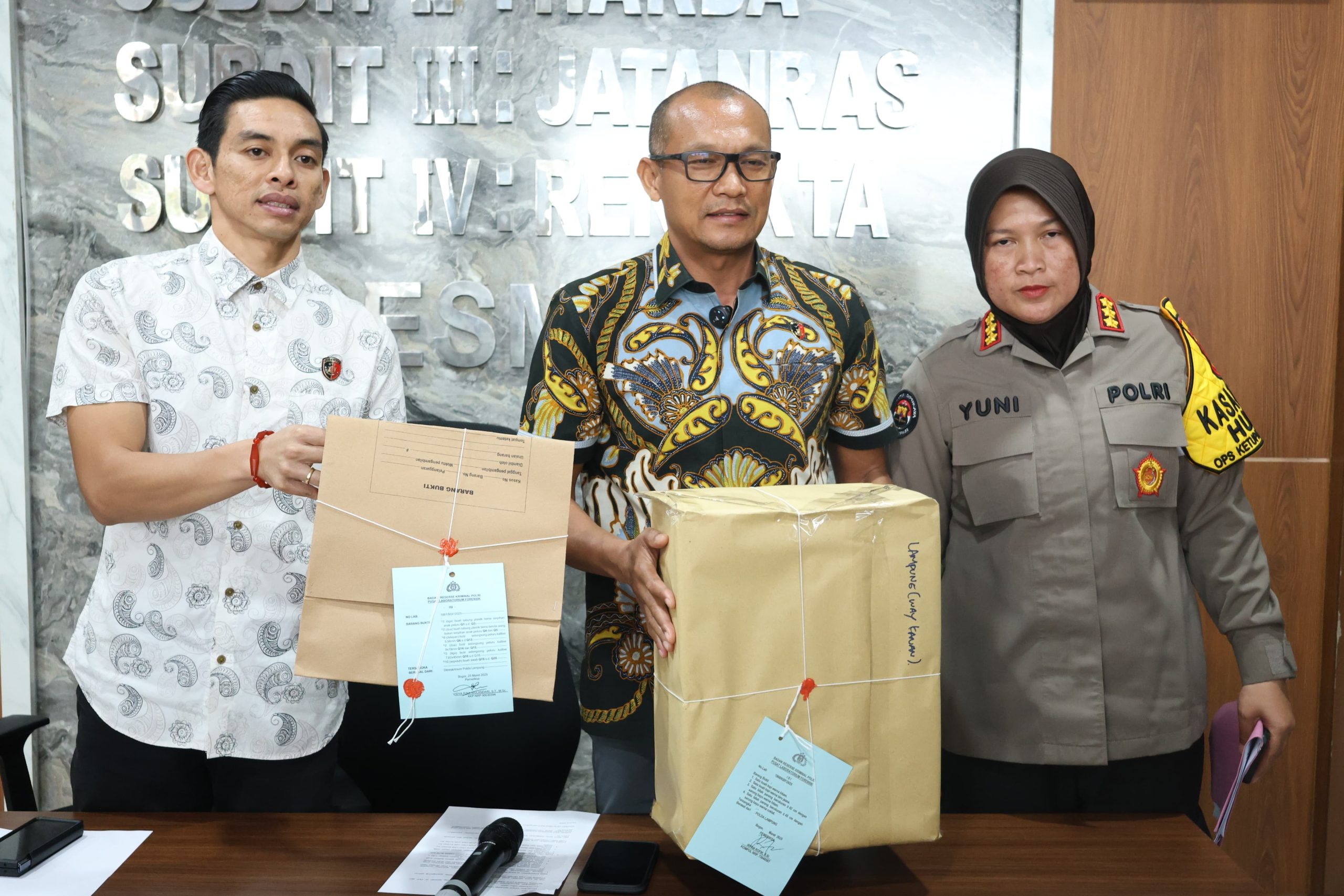 Lampung selatan(ungkapkasus.id) – Direktur kriminal umum Kombes Pol Pahala Simanjuntak, S.I.K. menggelar konferensi pers terkait hasil laboratorium yang telah diterima dari laboratorium forensik, Jumat 28 Maret 2025.