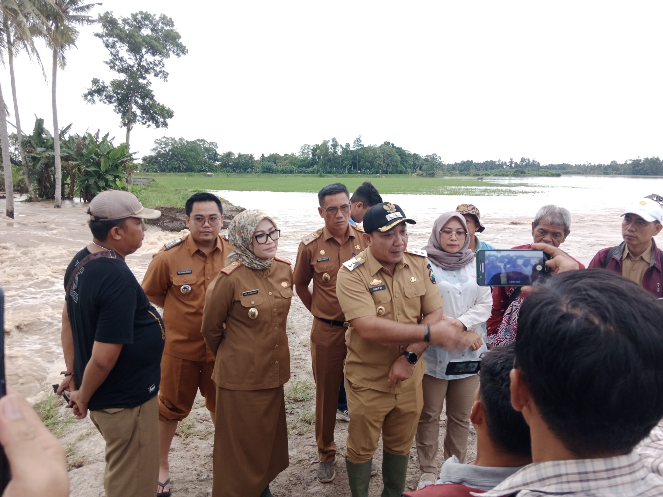 Wakil Bupati Lampung Selatan, M. Syaiful Anwar, S.T., M.Pd, bersama Ketua Komisi III DPRD Lampung Selatan, Yuti Rama Yanti, meninjau langsung lokasi jebolnya tanggul pada Senin (21/4/2025). Peristiwa ini merupakan kejadian kedua, setelah sebelumnya tanggul juga sempat jebol pada Februari 2025.