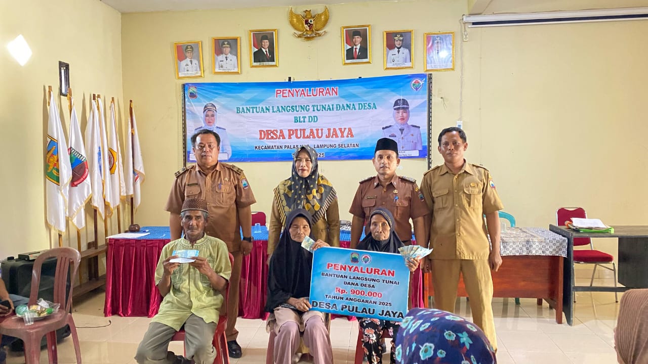 Pemerintah Desa Pulau Jaya, Kecamatan Palas, Kabupaten Lampung Selatan menyalurkan Bantuan Langsung Tunai Dana Desa (BLT-DD) tahap pertama tahun 2025 kepada 15 Keluarga Penerima Manfaat (KPM), Selasa (29/4/2025) di Aula Balai Desa Pulau Jaya pukul 14.30 WIB.