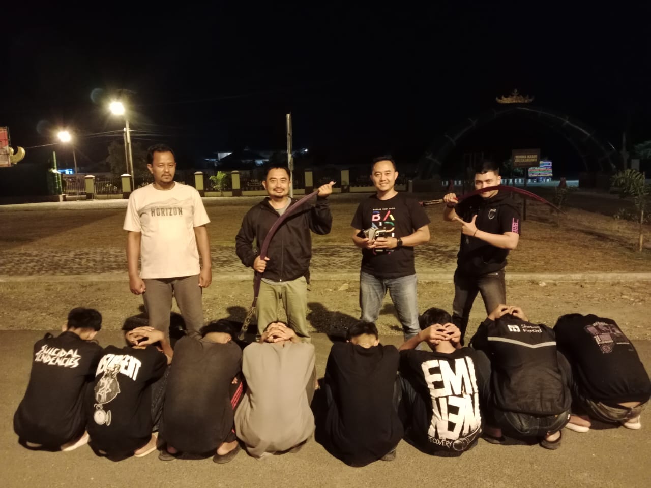 menurut kasat, Penangkapan para pelaku dilakukan di sejumlah lokasi berbeda sejak Kamis (8/5/2025) sekitar pukul 13.00 WIB. Dalam operasi tersebut, polisi turut menyita sejumlah barang bukti, di antaranya dua bilah celurit modifikasi dengan panjang sekitar satu meter, enam unit handphone, dan satu unit sepeda motor.