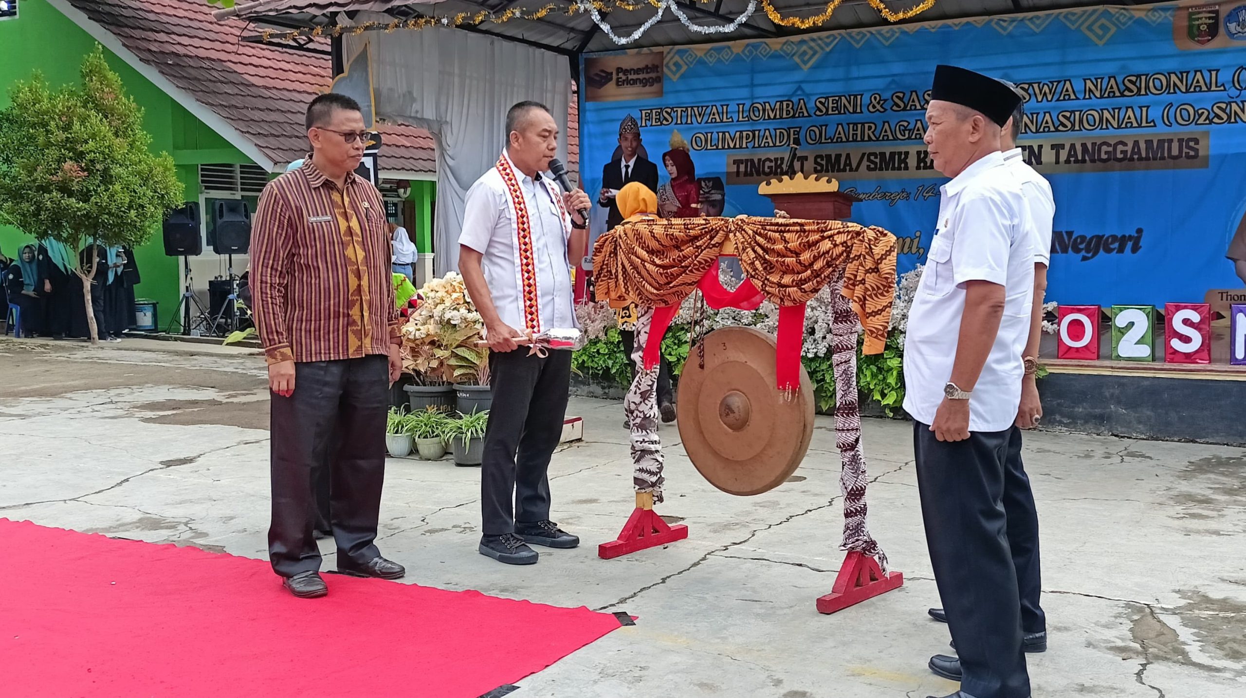 Kepala Cabang Dinas (Kacabdin) Pendidikan dan Kebudayaan Provinsi Lampung Wilayah II, Rodi Hayani Samsun, SH., MIP., secara resmi membuka kegiatan seleksi Festival Lomba Seni dan Sastra Siswa Nasional, (FLS3N) serta Olimpiade Olahraga Siswa Nasional (O2SN) jenjang SMA/SMK se-Kabupaten Tanggamus, yang digelar di SMAN 1 Sumber Rejo, Rabu (14/5/2025).