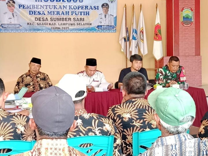 Pemerintah Desa Sumber Sari, Kecamatan Sragi, Kabupaten Lampung Selatan menggelar Musyawarah Desa Khusus (Musdesus) untuk pembentukan Koperasi Merah Putih (KMP), Jumat (16/5/2025) di aula desa setempat.