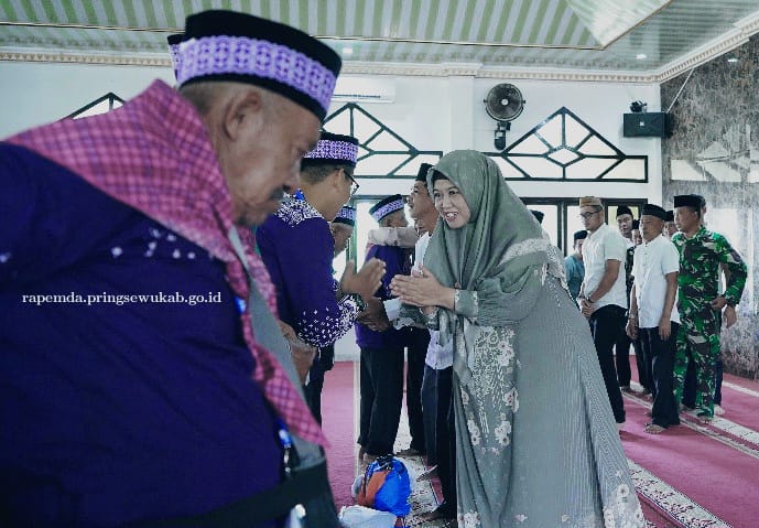 14 Jamaah Calon Haji (JCH) Kabupaten Pringsewu yang tergabung dalam Kelompok Terbang (Kloter) 56 JKG, secara resmi dilepas dan diberangkatkan oleh Wakil Bupati Pringsewu Umi Laila di Masjid Darussalam Pemda Kabupaten Pringsewu, Dusun Bulusari-Umbulan, Pekon Bulukarto, Kecamatan Gadingrejo, Kabupaten Pringsewu, Ahad (25/5/2025).