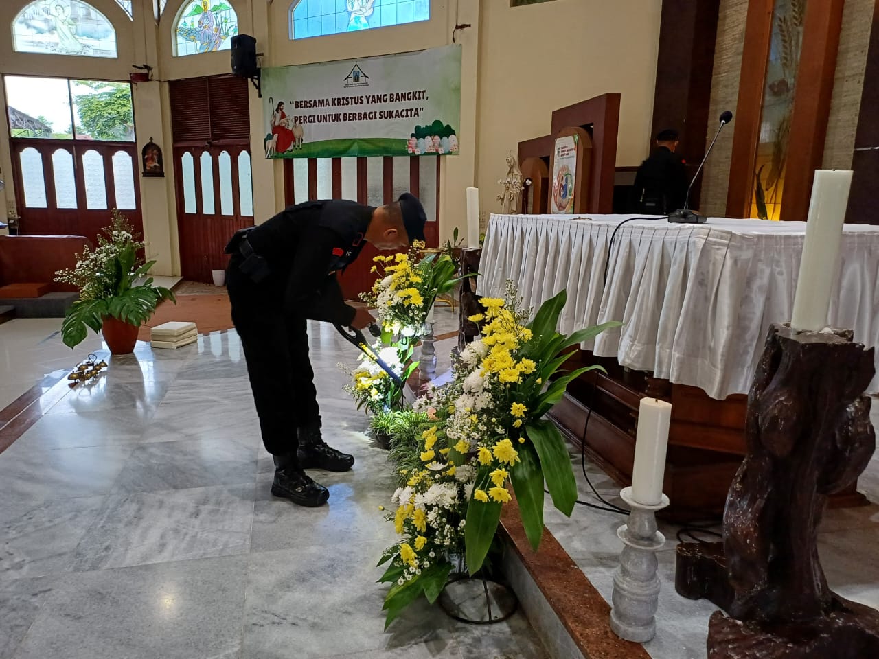 Kegiatan pengamanan tempat ibadah dalam perayaan hari Kenaikan Isa Almasih ini juga dilaksanakan oleh polres jajaran Polda Lampung.