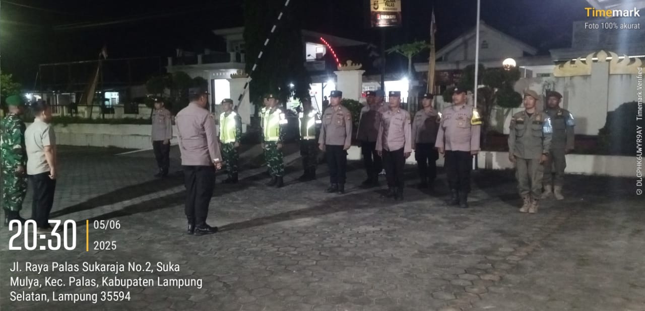 Kapolsek Palas IPTU Suyitno memimpin langsung apel siaga dalam rangka pengamanan malam takbiran di Mapolsek Palas, Rabu (4/6/2025) malam. Apel tersebut diikuti oleh personel gabungan dari unsur kepolisian, TNI, dan aparat pemerintahan desa.