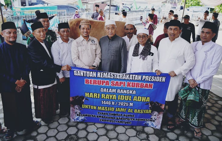 Selepas salat Idul Adha, Bupati Pringsewu memberikan santunan kepada anak yatim dan kaumh dhuafa, serta menyerahkan hewan qurban bantuan kemasyarakatan dari Presiden RI Prabowo Subianto berupa seekor sapi seberat lebih dari satu 1 ton, kepada panitia qurban, sekaligus melakukan penyembelihan hewan qurban tersebut.