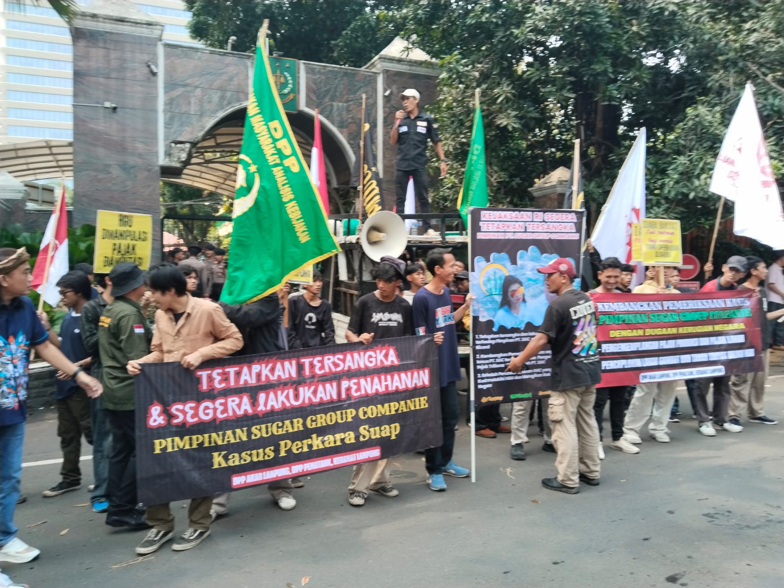 Selain itu, massa menyoroti luas lahan HGU SGC yang tidak transparan dan bervariasi antara 62.000 hingga 124.092 hektare, termasuk dugaan penyusupan kawasan adat Buay Aji dan lahan konservasi ke dalam wilayah konsesi SGC tanpa dasar hukum sah.