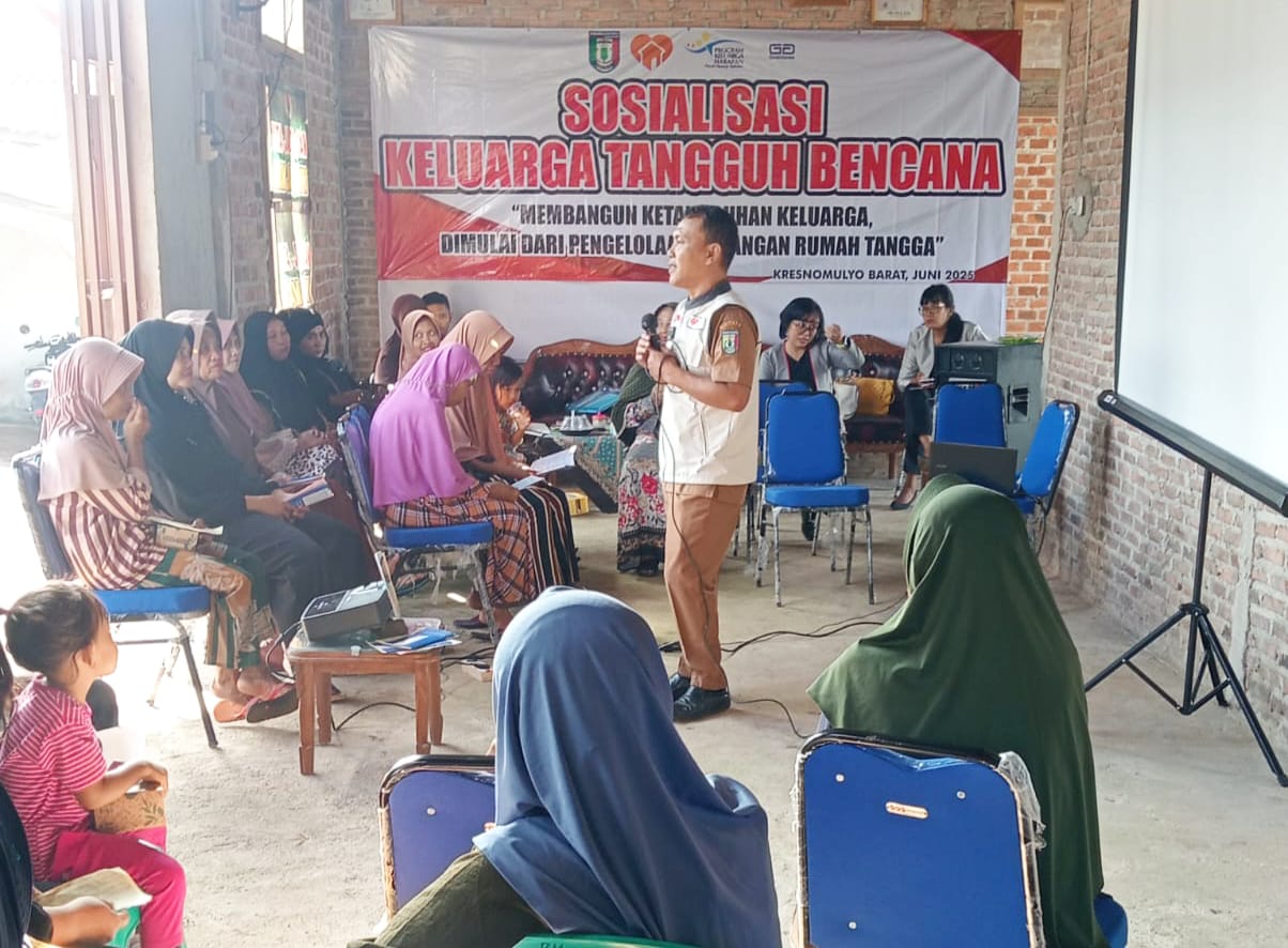 Bertempat di Aula Balai Pekon Persiapan Kresnomulyo Barat dilaksanakan Sosialisasi Keluarga Tangguh Bencana dengan tema Membangun Ketangguhan Keluarga dimulai dari Pengelolaan Keuangan Rumah Tangga ( Senin,16/6/2025).