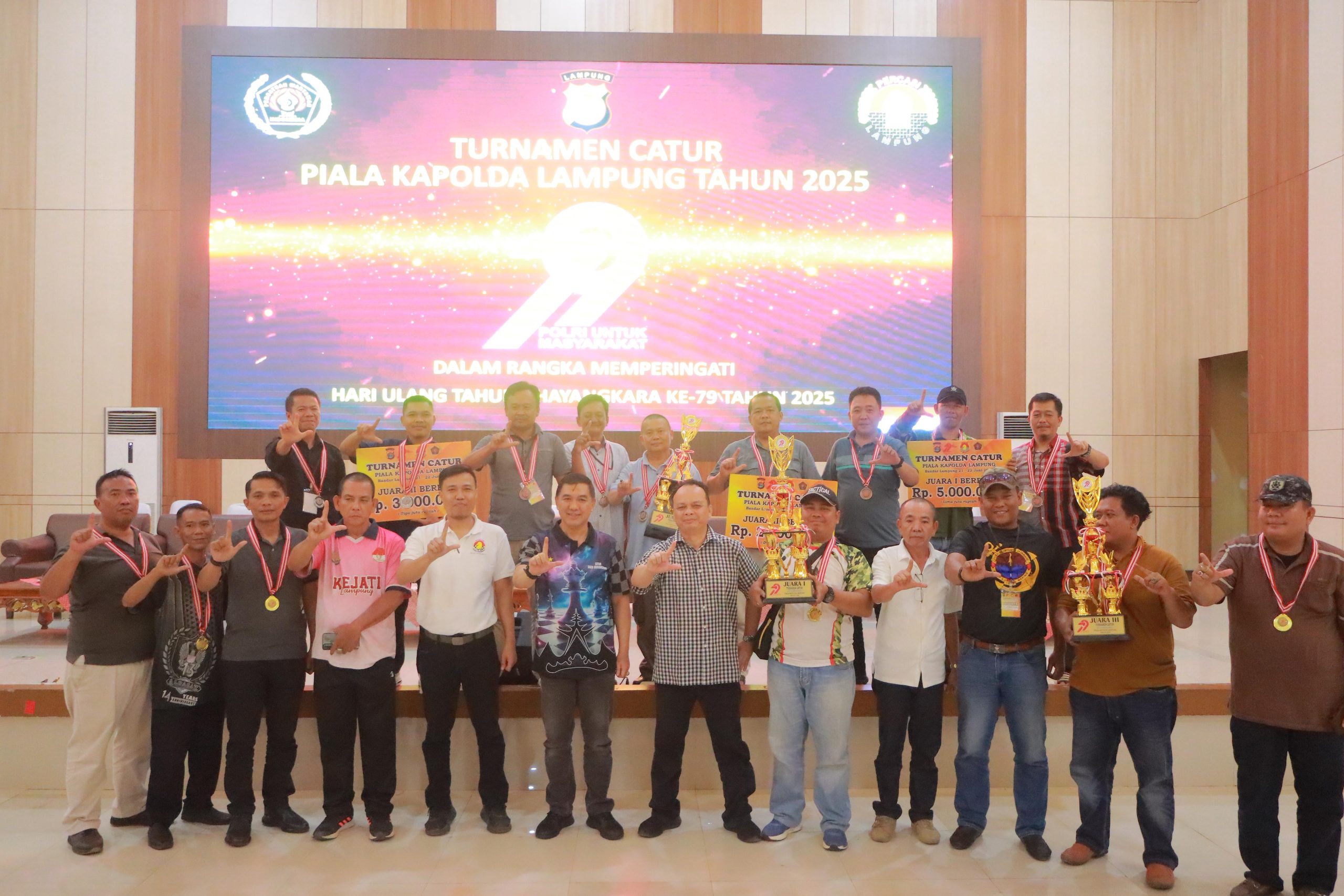 Bandar Lampung(ungkapkasus.id) (22/6/2025) – Gelaran akbar Turnamen Catur Piala Kapolda Lampung Tahun 2025 dalam rangka memperingati Hari Ulang Tahun (HUT) Bhayangkara ke-79 secara resmi ditutup hari ini di GSG Polda Lampung.