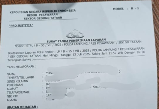 Nova Yudi pengusaha ternama di Lampung resmi melaporkan seorang pedagang bernama Cindy ke Polsek Gedong Tataan atas dugaan penipuan dan penggelapan dengan kerugian mencapai puluhan juta rupiah. Senin 14/7
