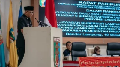 Ungkap Kasus, Bandarlampung – Gubernur Lampung, Rahmat Mirzani Djausal menyampaikan tanggapan terhadap pemandangan umum fraksi-fraksi…
