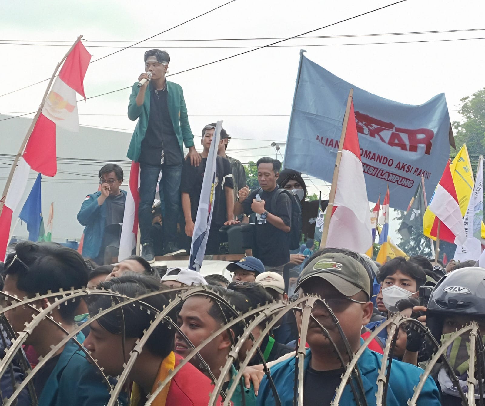 Ribuan mahasiswa bersama elemen masyarakat Lampung turun ke jalan, Senin (1/9/2025). Mereka mengepung Gedung DPRD Provinsi Lampung, menyuarakan sepuluh tuntutan strategis yang dinilai mendesak untuk perbaikan tata kelola negara.