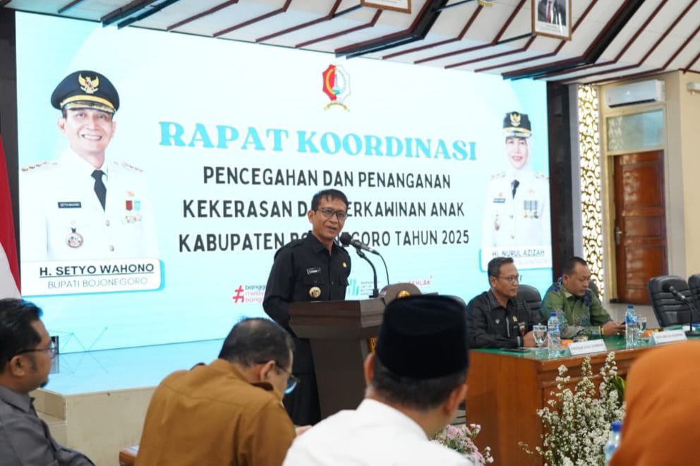 – Bojonegoro Pemerintah Kabupaten Bojonegoro melalui Dinas Pemberdayaan Perempuan, Perlindungan Anak, dan Keluarga Berencana (DP3AKB) menggelar Rapat Koordinasi Pencegahan dan Penanganan Kekerasan serta Perkawinan Anak Kabupaten Bojonegoro Tahun 2025, yang berlangsung di Ruang Angling Dharma Pemkab Bojonegoro, Selasa (7/10/2025).