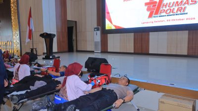 LAMPUNG(ungkapkasus.id) – Dalam rangka memperingati Hari Ulang Tahun ke-74 Humas Polri Polda Lampung melalui Bidang Humas Polda Lampung menggelar kegiatan donor darah serentak di Polda dan Polres jajaran. Kegiatan ini berlangsung di Gedung Serba Guna (GSG) Polda Lampung. Rabu(22/10/25)