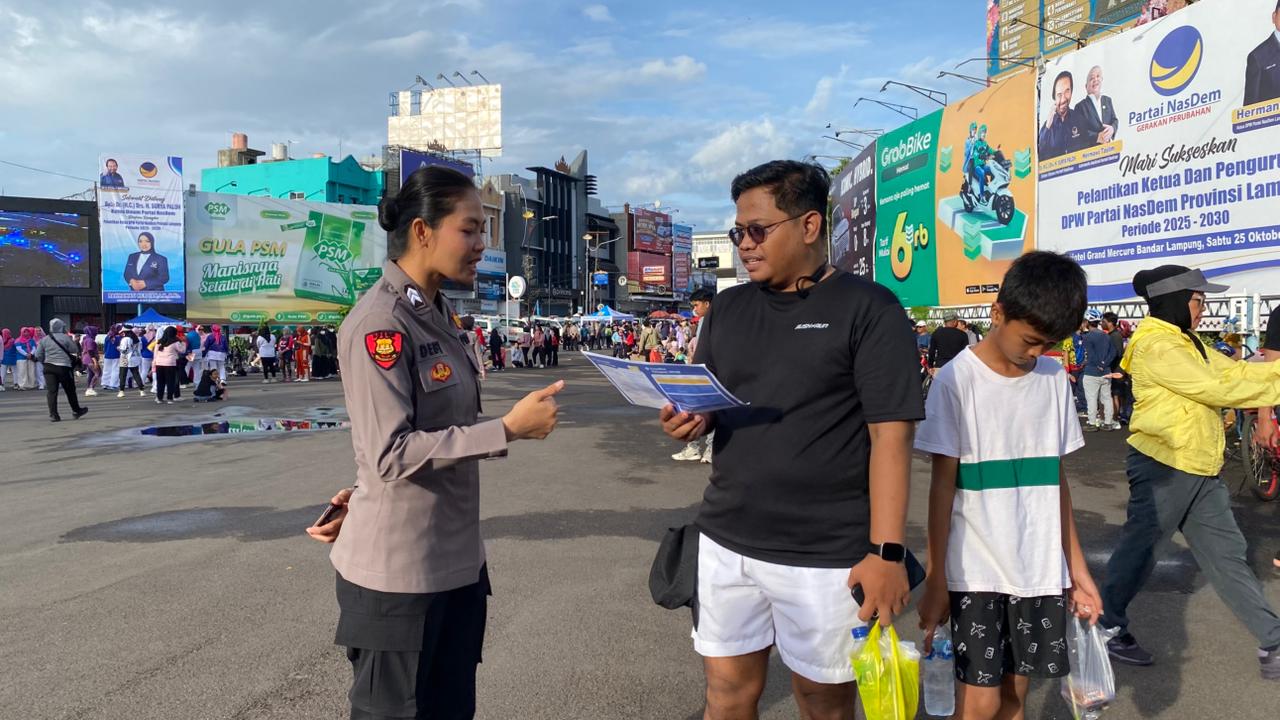 “Biro SDM Polda Lampung memanfaatkan momen Car Free Day untuk mensosialisasikan PPDB SMA Kemala Taruna Bhayangkara. Ini merupakan bentuk komitmen Polri tidak hanya dalam menjaga kamtibmas, tetapi juga berperan aktif dalam memajukan dunia pendidikan. Sekolah ini tidak hanya menjamin mutu pendidikan bertaraf internasional, tetapi juga membentuk karakter dan disiplin peserta didik melalui sistem asrama,” Ucapnya
