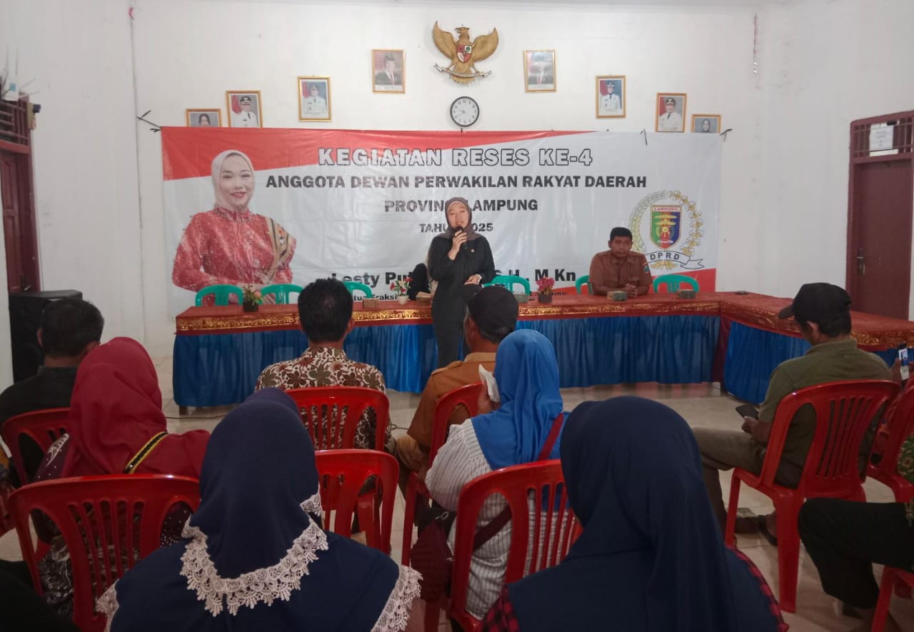 — Anggota DPRD Provinsi Lampung dari Komisi IV Fraksi PDI-P, Lesty Putri Utami, S.H., M.Kn., menggelar kegiatan reses di Balai Desa Bali Agung, Kecamatan Palas, Lampung Selatan, Selasa (18/11/2025).