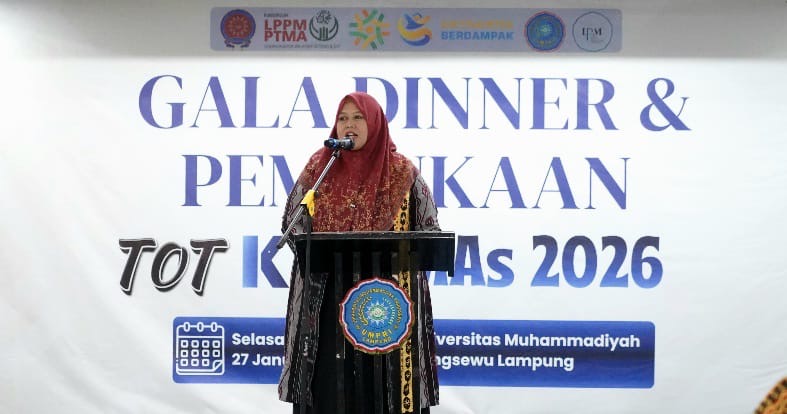 Wakil Bupati Pringsewu Umi Laila menghadiri Gala Dinner dan Pembukaan Training of Trainer (ToT) Kuliah Kerja Nyata Muhammadiyah dan Aisyiyah (KKN MAs) Tahun 2026 di Gedung Rektorat Lantai 3 Universitas Muhammadiyah Pringsewu (UMPRI), Jalan KH.Ahmad Dahlan, Kelurahan Pringsewu Barat, Kecamatan Pringsewu, Kabupaten Pringsewu, Lampung, Selasa (27/1/2026) malam.