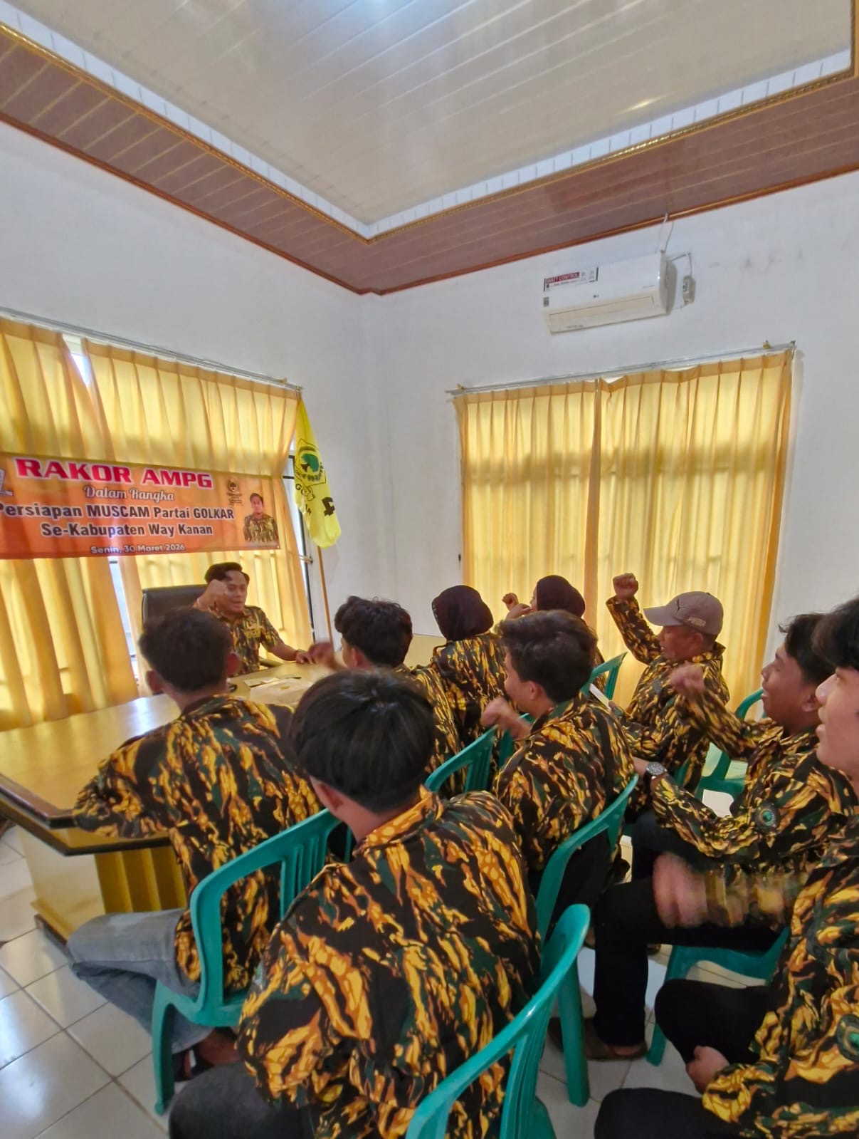 Pimpinan Daerah Angkatan Muda Partai Golkar (PD AMPG) Kabupaten Way Kanan menggelar agenda rapat koordinasi (Rakor) dalam rangka persiapan musyawarah Kecamatan (Muscam) Partai Golkar se-Kabupaten Way Kanan yang berlangsung di Kantor DPD Partai Golkar Kabupaten Way Kanan pada Senin (30/3/2026) siang.