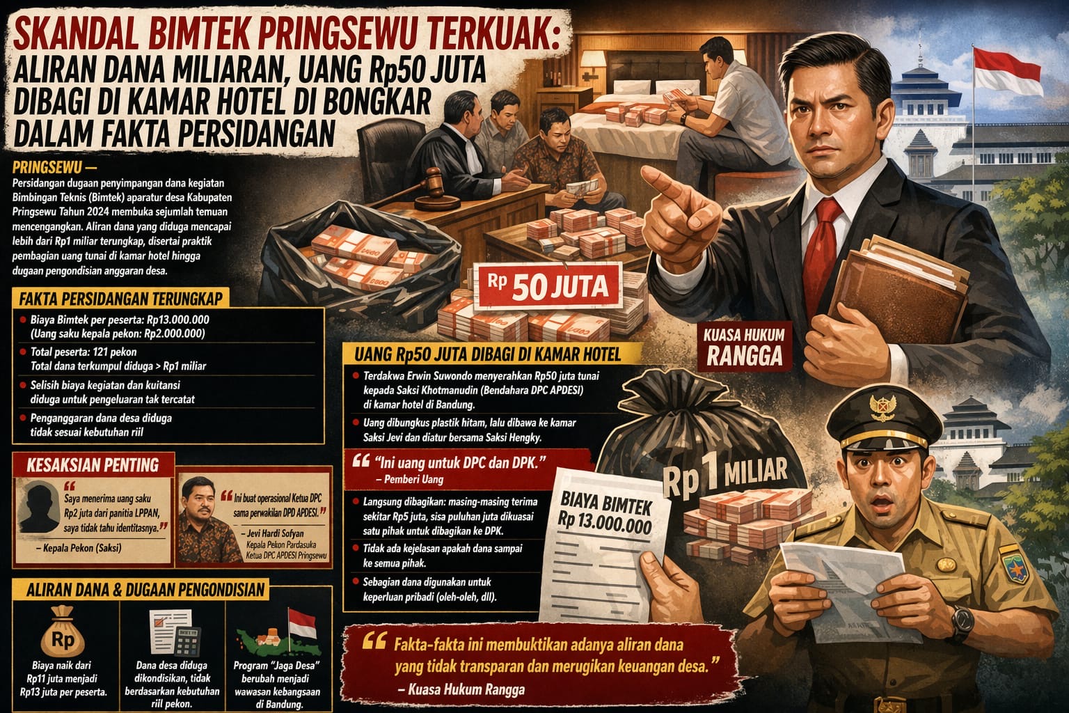 Persidangan perkara dugaan penyimpangan dana kegiatan Bimbingan Teknis (Bimtek) aparatur desa Kabupaten Pringsewu Tahun 2024 mulai mengungkap sejumlah fakta di ruang sidang. Perkara ini terdaftar dengan *Nomor Perkara: [74/pid.sus-TPK/2025/PN TJK]* dan *Nomor Registrasi Tuntutan: [NO. REG. PERK:PDS-07/L.8.20/Ft.1/02/2026]*.