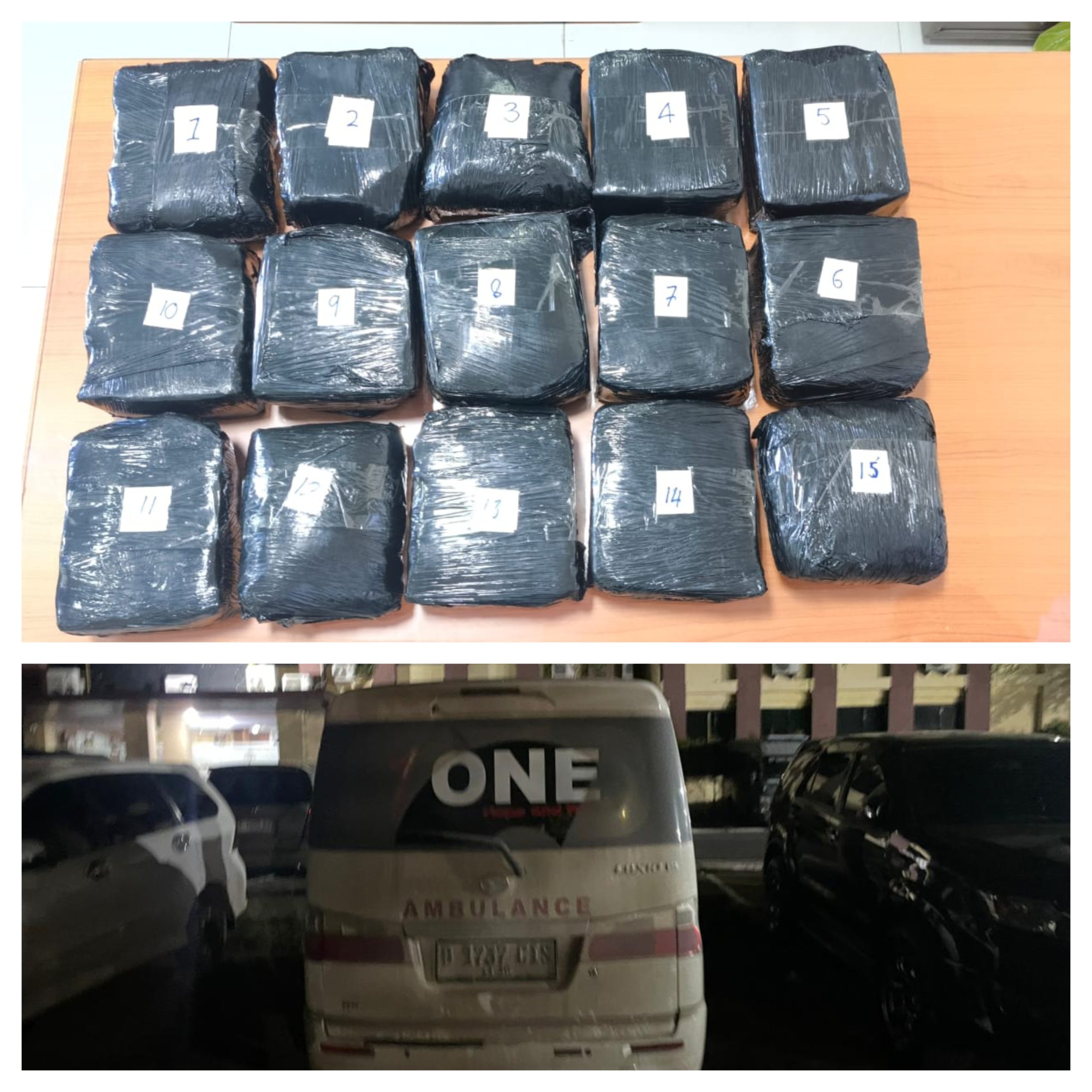 Barang bukti tersebut ditemukan tersembunyi di bawah jok bagian belakang kendaraan ambulans.Dari hasil penimbangan, total berat sabu yang diamankan mencapai 15.739 gram.
