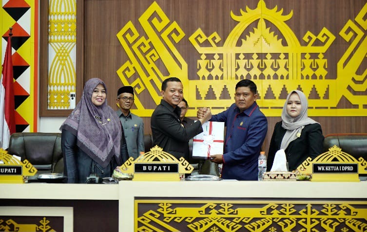 Rapat Paripurna DPRD Pringsewu dengan agenda penyampaian keputusan DPRD tentang Rekomendasi Hasil Pembahasan Laporan Keterangan Pertanggungjawaban Kepala Daerah (LKPJ) 2025, serta Rancangan Peraturan Daerah (Ranperda) Fasilitasi Penyelenggaraan Pesantren sekaligus pendapat bupati atas Ranperda tersebut digelar di gedung DPRD setempat, pada Selasa (14/4/2026).