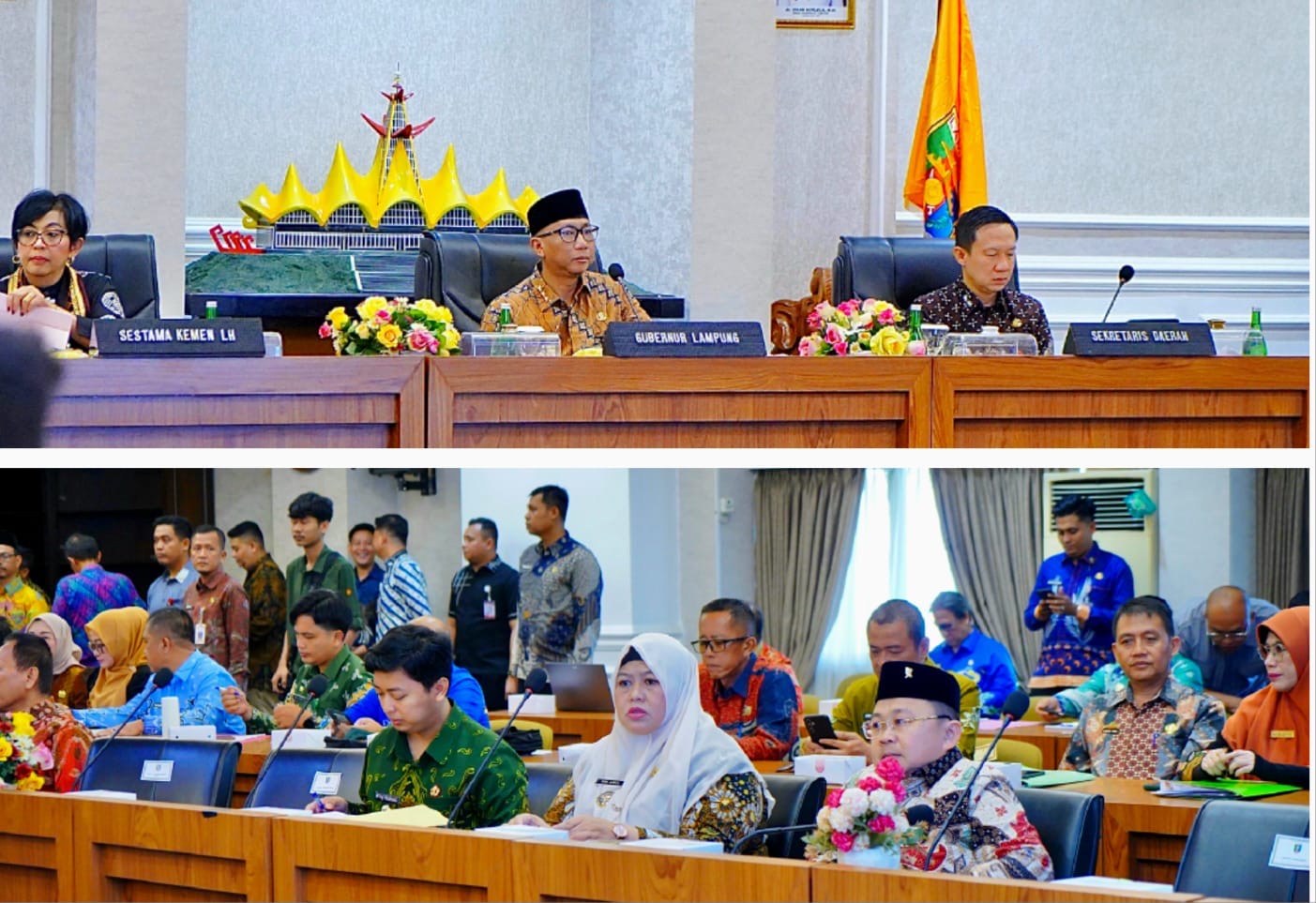 Rapat dipimpin oleh Gubernur Lampung Rahmat Mirzani Djausal didampingi Sekretaris Utama Kementerian Lingkungan Hidup Rosa Vivien Ratnawati dan Sekretaris Daerah Provinsi Lampung Marindo Kurniawan, diikuti jajaran Pemerintah Provinsi Lampung dan Kabupaten Kota se-Provinsi Lampung.