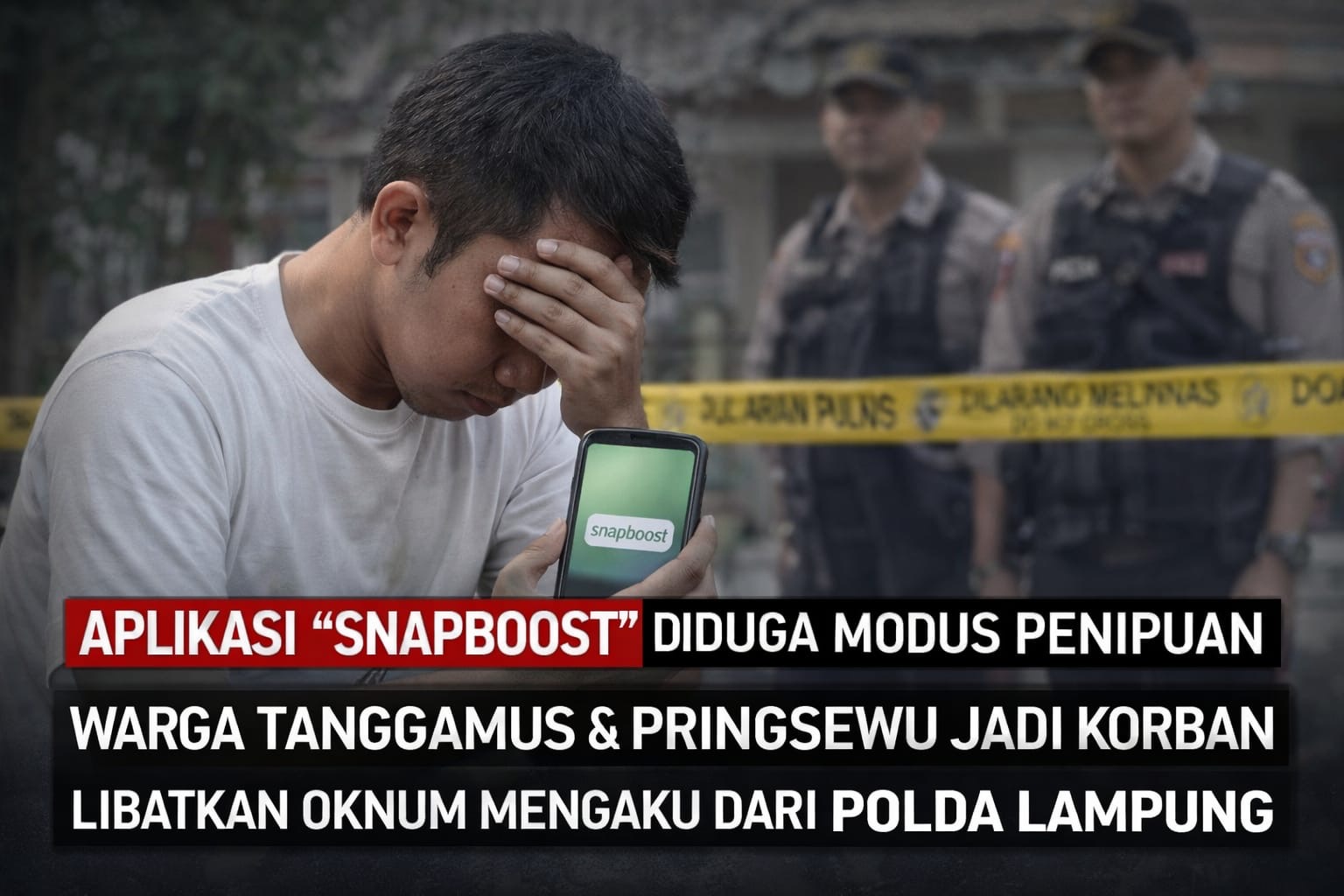 Dugaan penipuan berkedok aplikasi kembali mencuat dan menimbulkan keresahan di tengah masyarakat. Aplikasi bernama Snapboost diduga digunakan sebagai sarana untuk menarik dana dengan iming-iming penggandaan uang, yang berujung pada kerugian sejumlah warga di Kabupaten Tanggamus dan Pringsewu. Rabu 15/4/2026