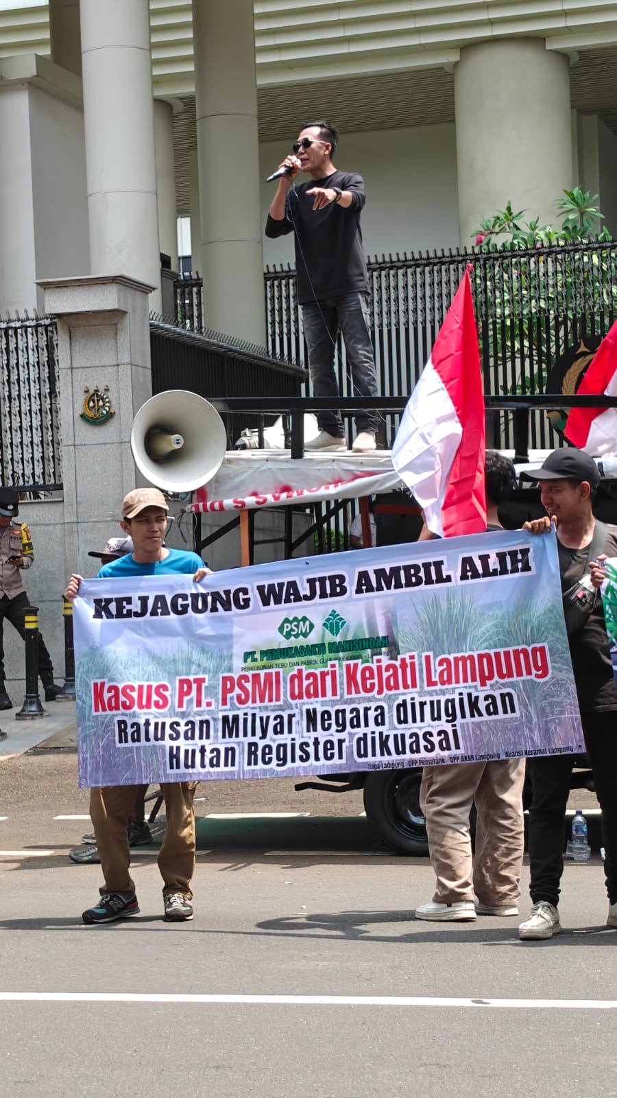 Senada dengan itu, Ketua DPP Pematank, Suadi Romli, dalam orasinya menyoroti kasus PT Pemuka Sakti Manis Indah (PSMI) yang dinilai janggal dalam penanganannya. Ia menyebut adanya dugaan persoalan hukum terkait lahan Register 44 atas penyalahgunaan alih fungsi hutan kawasan, terlebih sudah adanya Penitipan uang senilai hingga 100 miliar rupiah di Kejaksaan Tinggi Lampung oleh PT tersebut, namun hingga kini belum ada penetapan tersangka.