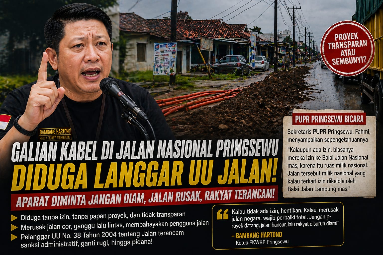 Galian Kabel di Jalan Nasional Pringsewu Diprotes, Aparat Diminta Jangan Diam