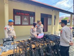Kapolres Pesisir Barat AKBP Bestiana, S.I.K., M.M., melaksanakan kegiatan pengecekan senjata api (senpi) yang digunakan personel sekaligus senjata api yang tersimpan di gudang logistik Polres, pada Senin (27/04/2026) di halaman Mapolres Pesisir Barat.
